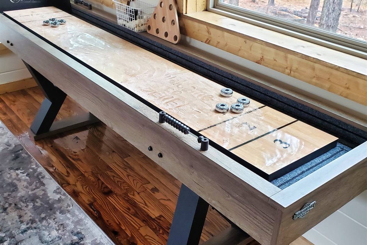 Plenty of in-cabin entertainment will keep you and your family connected with one another: four smart TV's, an air hockey table, a shuffleboard table, a Pac-Man game console table to bring back all of your favorite 1980's memories, board games and our favorite, shuffleboard bowling!